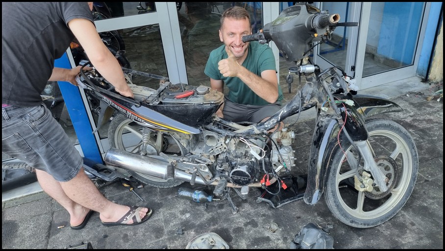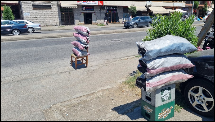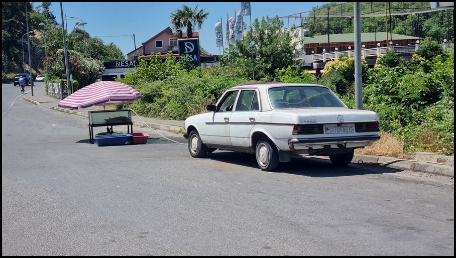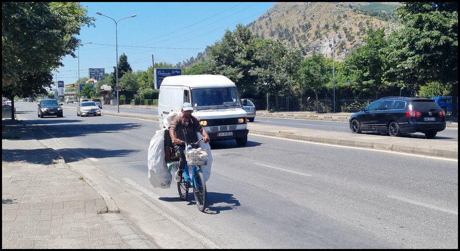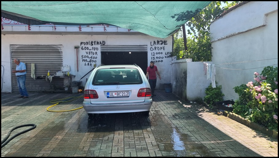 Aujourd'hui la journée sera tranquille. Ce matin nous allons à Shkoder, un peu de marche 6 kms aller retour.Tout le long du traget sur les trottoirs de nombreux étals s'alignent, et l'on comprend que les locaux viennent vendre les produits de leurs jardins. En effet à la vue des petites quantités de fruits et légumes, celà ne pex être que leur production et que ces ventes leurs permettent d'avoir quelques revenus supplémentaires. Les gens sont très sympathiques, toujours avec le sourire. Dans les rues, beaucoup de petits artisants installés dans des petits ateliers travaillent directement sur la rue. Ils y a toutes sortes de métiers, mais les plus originaux sont ces ateliers de mécanique où ils transforment des petites motos en triporteur. Pour ma part, je suis à la recherche d'une carte détaillée de l'Albanie, mais là mes recherches n'aboutirons pas. De retour vers le camping, nous arrêtons chez un marchand de poulet cuit, où nous achetons notre repas de midi un poulet à 5€. L'après-midi sera consacrée au farniente bien à l'ombre sous notre tonnelle de vigne.