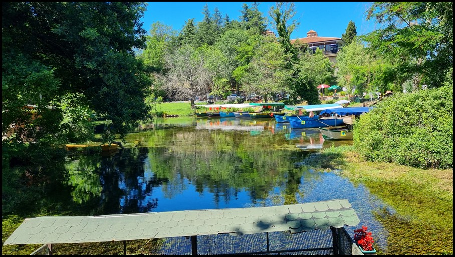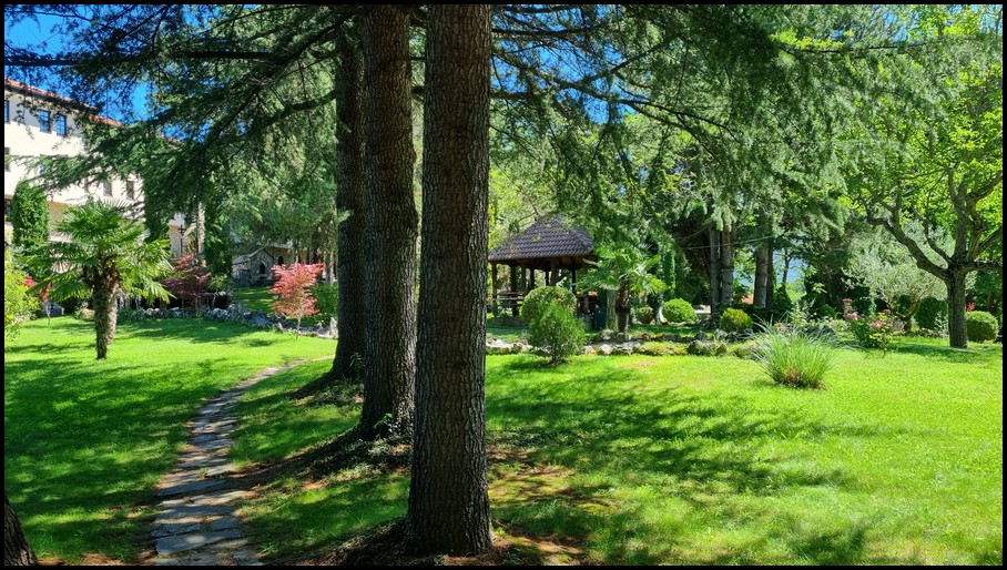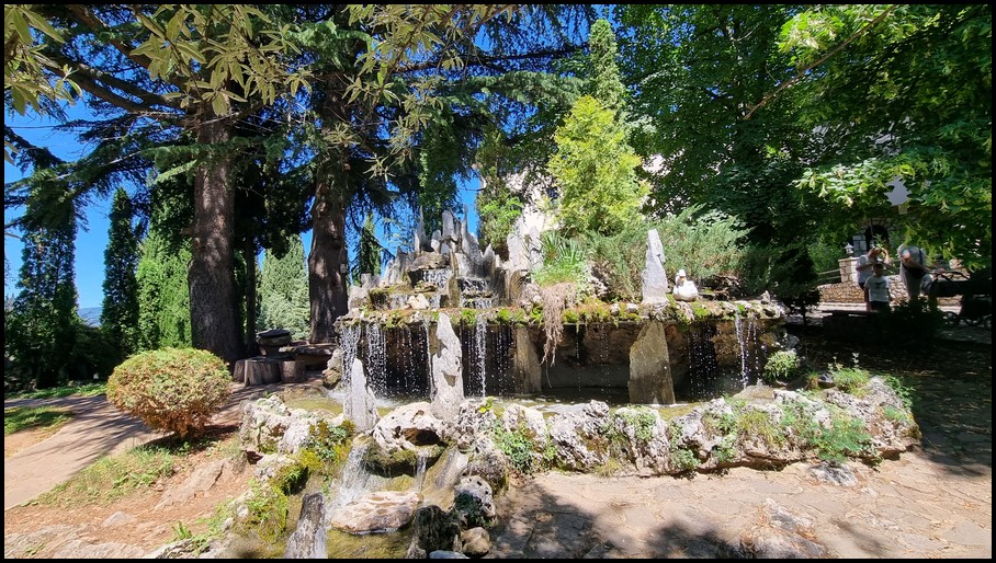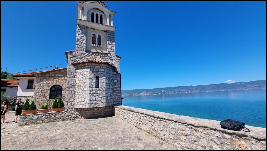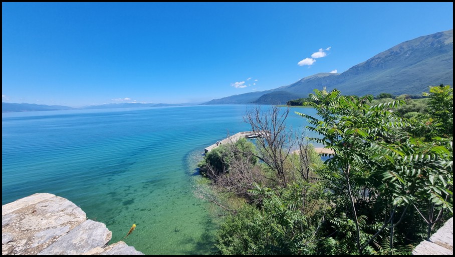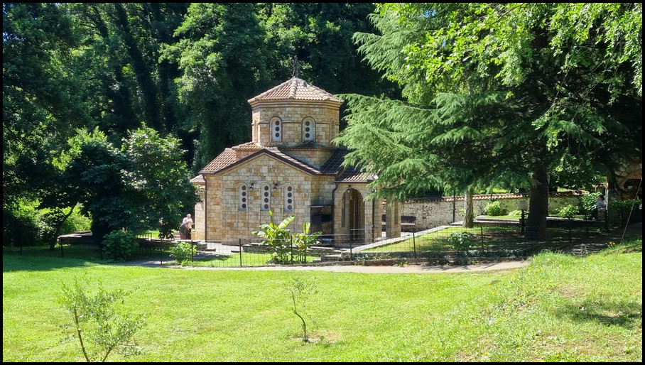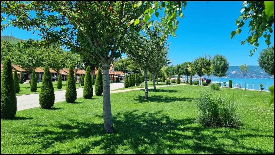 Aprés un orage hier au soir l'électricité a été coupée jusqu'à aujourd'hui 18 heures. Il parait que cela est trés fréquent en Macédoine. L'information nous a été donnée par la réception et c'est surement pour ça que nous avons remarqués beaucoup de groupes électrogènes un peu partout. Ce matin nous allons visiter le Monastère de Saint-Naum qui se trouve à 3.5 kms de notre camping. La visite depuis le camping se fera à pied. Le monastère Saint-Naum est un monastère construit à partir du Xᵉ siècle au bord du lac d'Ohrid. Il s'agit d'un des lieux les plus touristiques de la Macédoine du Nord, grâce à son cadre naturel exceptionnel, à son histoire et à son architecture, typiquement byzantine. Effectivement l'endroit est trés charmant et reposant le Monastère est magnifique, et nous profitons de son merveilleux paysage ainsi que ses parcs fleuris avec cette vue sur le splendide lac d’Ohrid. Nous avons passé une grande partie de l'aprés-midi dans le petit parc que nous avions traversés, celà nous a permis de nous tenir à l'ombre car la tempèrature est élevée.