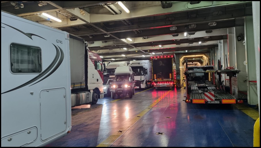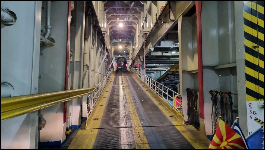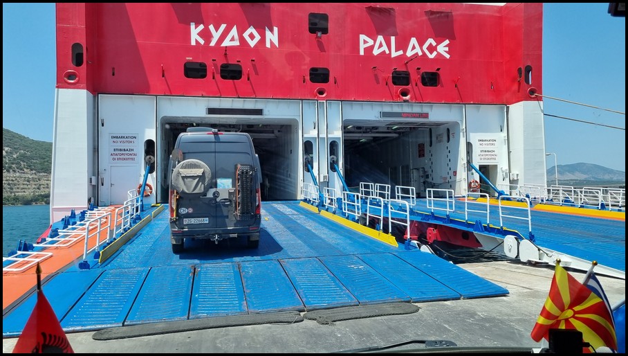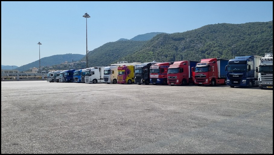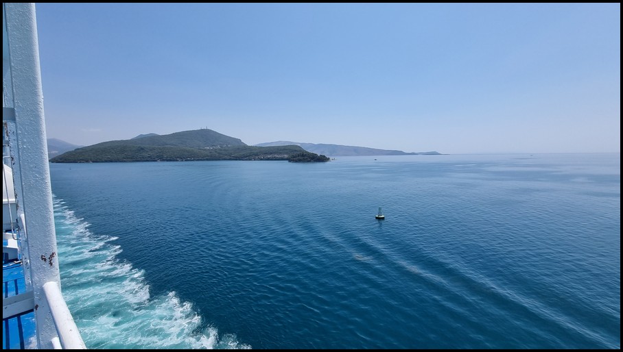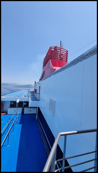 Ce matin direction Igoumenitsa pour prendre le bateau pour l'italie j'ai changer mon billet ce matin au port a l agence Grimaldi il était prévu mercredi la chaleur monte en puissance Grèce comme beaucoup d'autre pays en europe peu de passager sur ferry mais des camions en nombres les garages était complets de toute nationalité la traversé c'est faite sur mer calme et sous un ciel bleu arrivé à 20h a Brindisi quelques courses car pas eu le temps ce matin et ensuite un parking au bord de la mer .