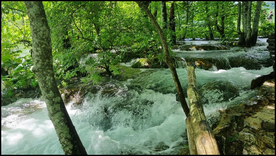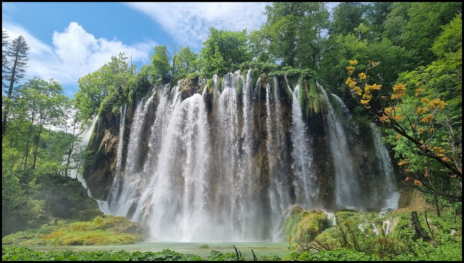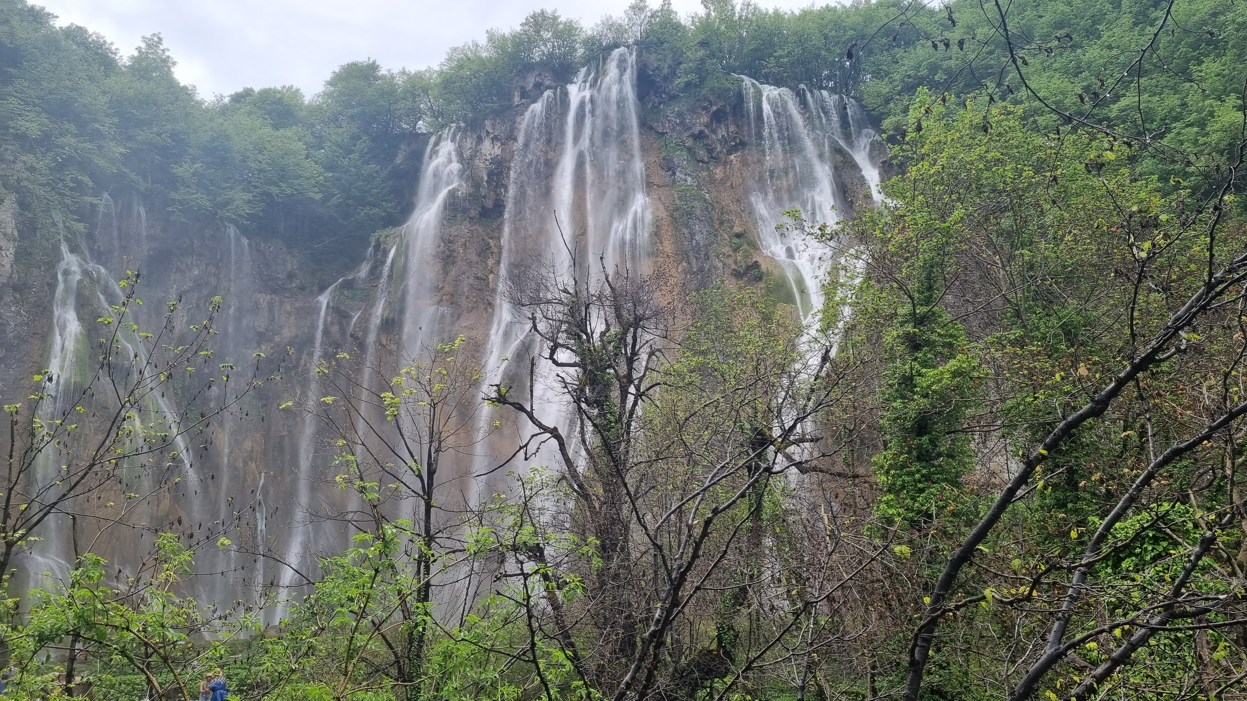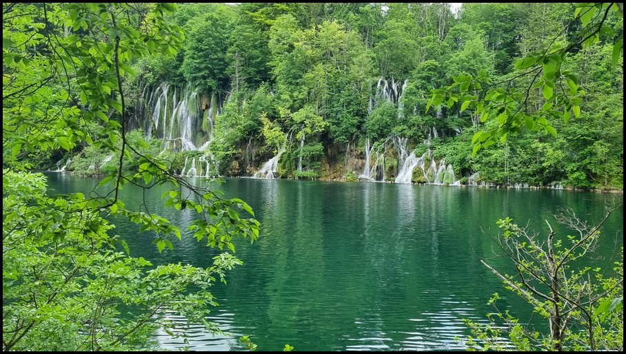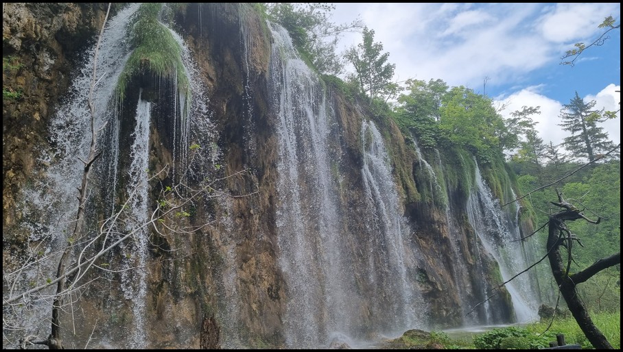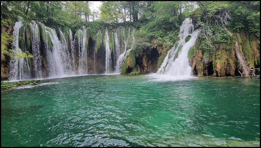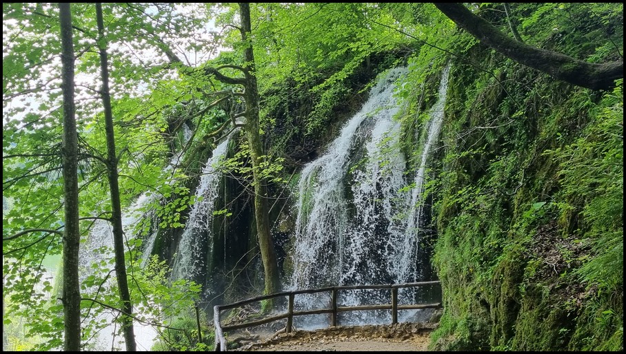 Ce matin au reveil nous regardons le temps. Soleil avec des nuages, nous décidons de faire la visite des lacs. Départ à 9heures, arrivé sur place avec le camping-car, un grand parking pour stationner tarif 10€ la journée. A l'entrée nous avons le choix de plusieurs circuits, nous choisissons le circuit H environs 9 kms d'une durée de 5 h. Nous prenons nos billets 39,80€ par personne. Nous embarquons dans un bus électriques qui nous emmene au point le plus des lacs. Ensuite nous redescendons le long des rives du lac par des passerelles en bois, les paysages se reflètent dans les lacs comme dans des miroirs, c’est magnifique. Nous arrivons à l'embarcadère où un bateau électrique nous emmène de l’autre côté du lac, nous continuons jusqu'au bout des passerelles à proximité de l’entrée n°1 du parc on arrive à la plus grande cascade de Croatie. Elle mesure 87 m au total, c'est impressionnant, les couleurs sont manifiques et d'un bleu turquoise ainsi que la végetation au milieu des cascades un beau parcours dans un endroit magique et riche de verdure que la nature à donné à cet endroit fin de la visite 15h30. Le soleil nous aura accompagné les trois quart de la visite puis le temps se couvre avec un peu de pluie. Eu cours de la visite, nous avons retrouvé un couple de français qui sont au même camping que nous, comme ils sont venus en bus, nous les ramenons avec nous. La journée se termine comme il se doit autour d'un verre. La soirée a été très longue.