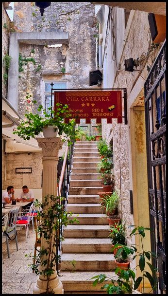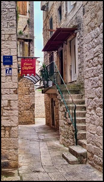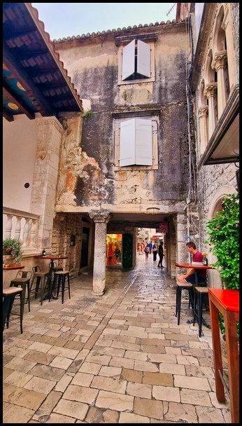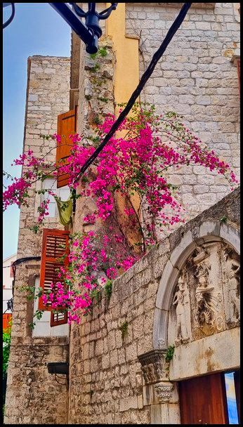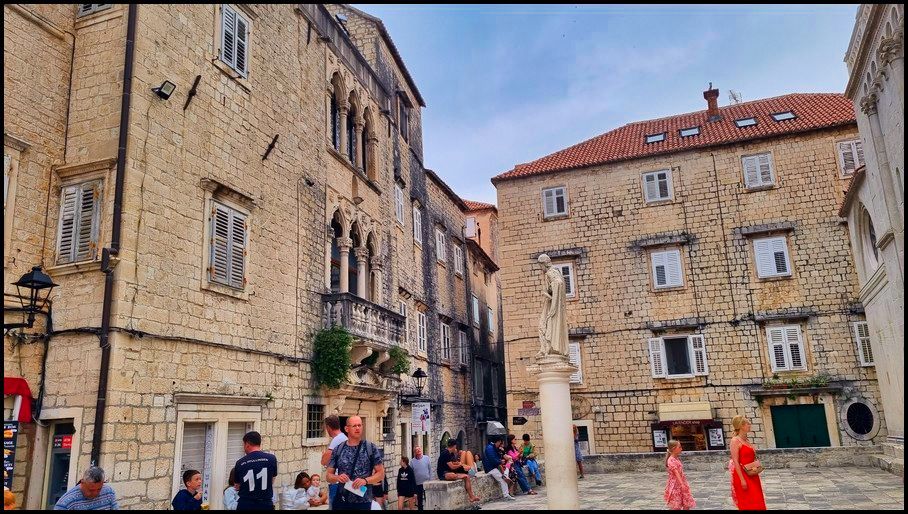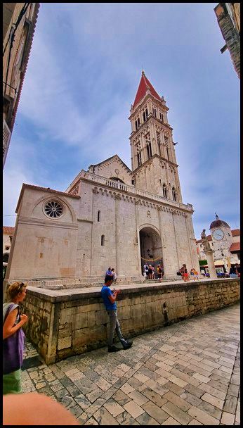 Pour cette aprés-midi retour à Trogir. Installée sur une petite île et entourée de remparts, Trogir et sa vieille ville nous emmène dans une ambiance médiévale ce qui lui a value son inscription au patrimoine mondial de l’Unesco. nombreuses portes sculptées qui permettent d’entrer dans la ville.Avec sa taille relativement modeste (l’île fait environ 1 km²), la vieille ville de Trogir se visite rapidement à pied, nous commençons par le monument le plus important de Trogir, la cathédrale Saint-Laurent, puis nous déambulons dans la vieille ville ce ne sont que des ruelles étroites qui nous emmènent sur la promenade en bord de mer bordée de palmiers. Nous pouvont admirer les remparts de la citée avec de nombreuses portes sculptées qui permettent d’entrer dans la ville. La journée touchant à sa fin nous rejoignons le camping la tête pleine d'image de cette magnifique citée.