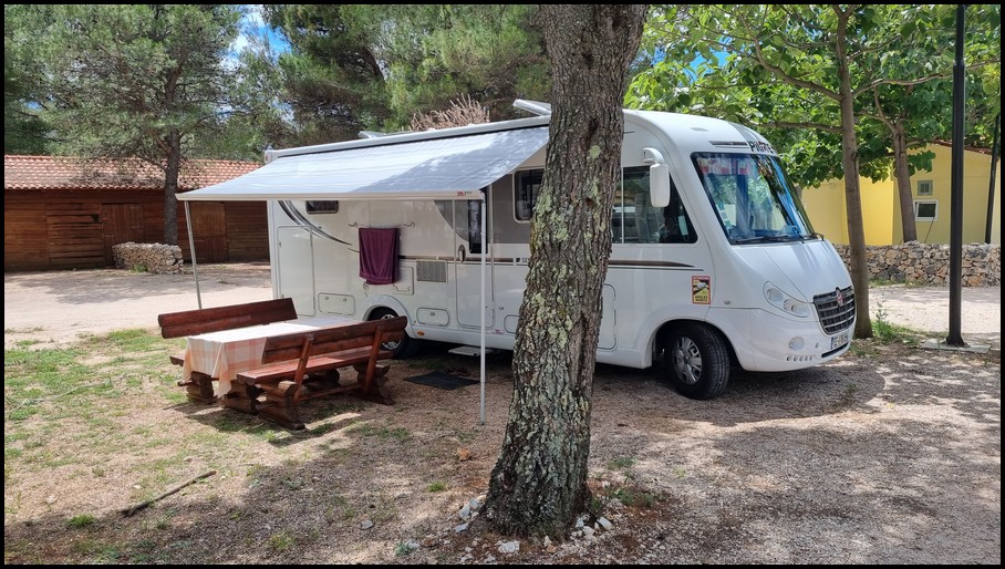 Aujourd'hui nous prenons la route pour le parc national de KRKA à 70 kmsd'ici. Nous prenons le départ à 10 h comme d'habitude et nous arrivons tranquillement à 11h45. La visite du parc est prèvue pour demain car nous sommes dimanche et il y a énormèment de monde. Nous nous installons dans un petit camping à proximitée de l'entrée du parc pour être prêt demain matin à la première heure. Nous profitons du soleil pour aller marcher dans la campagne environnante, une journée tranquille.