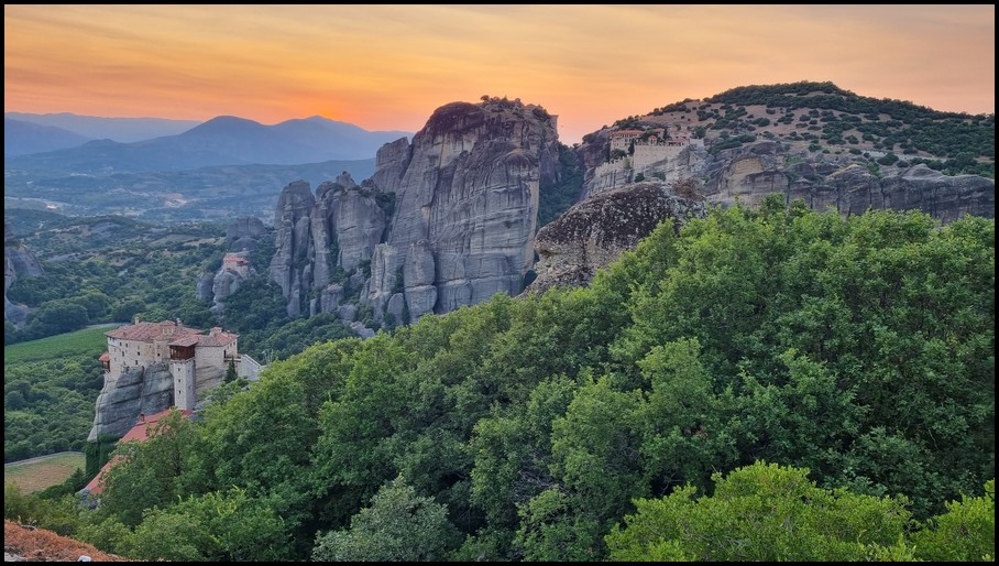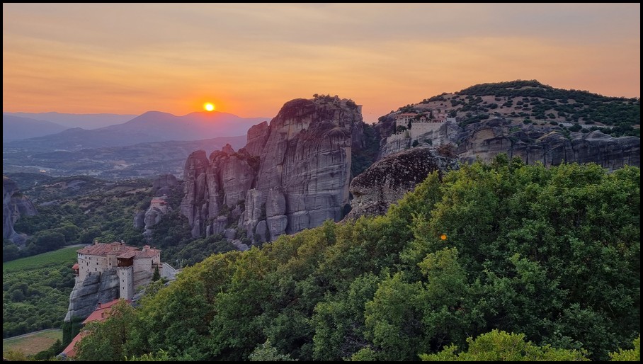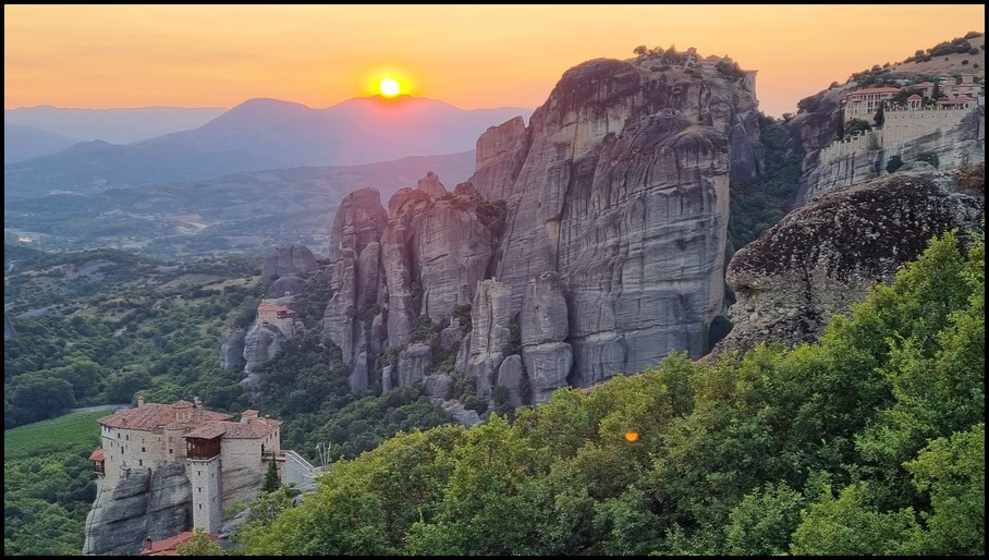 couché de soleil nous garderons un trés bon souvenir des Météores et ses Monastères.