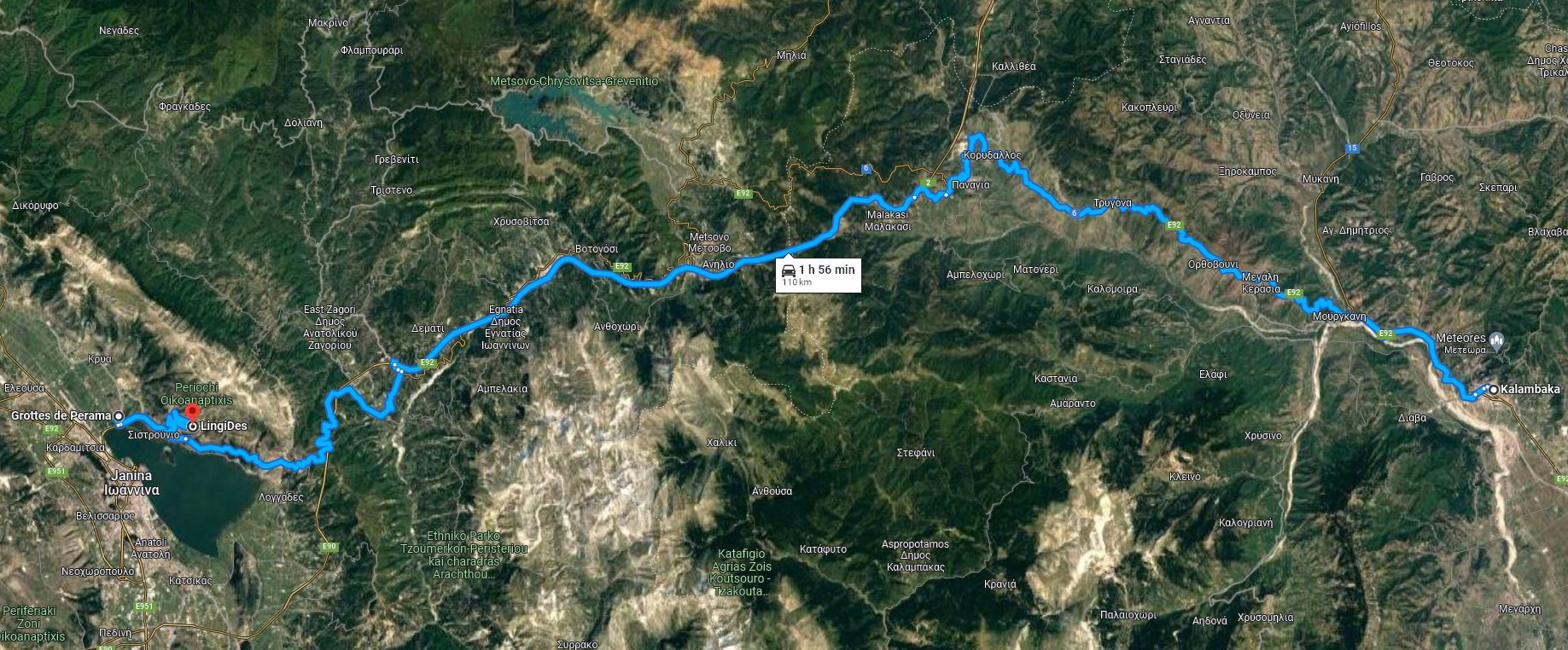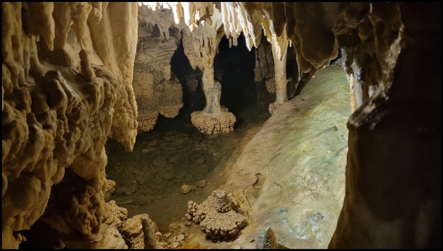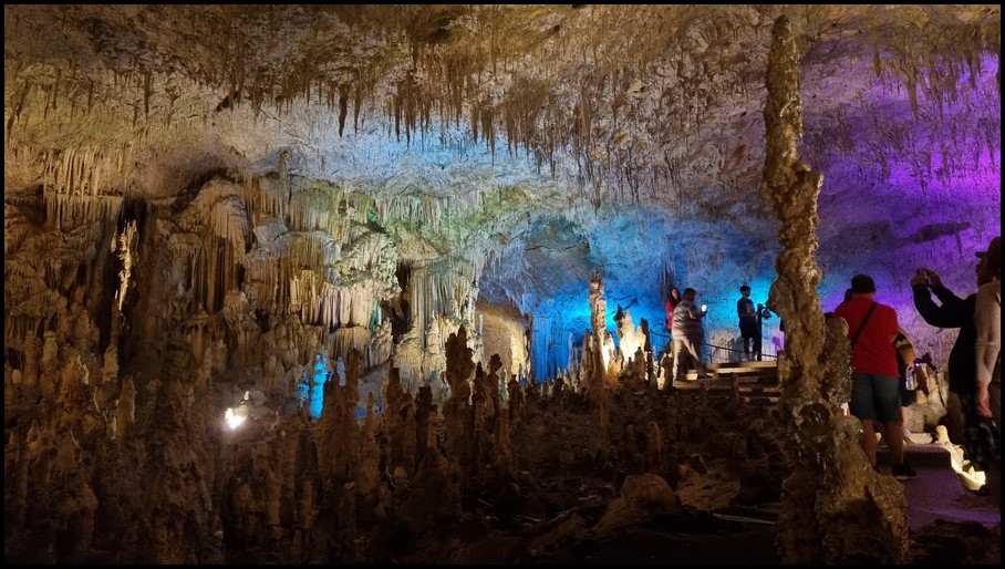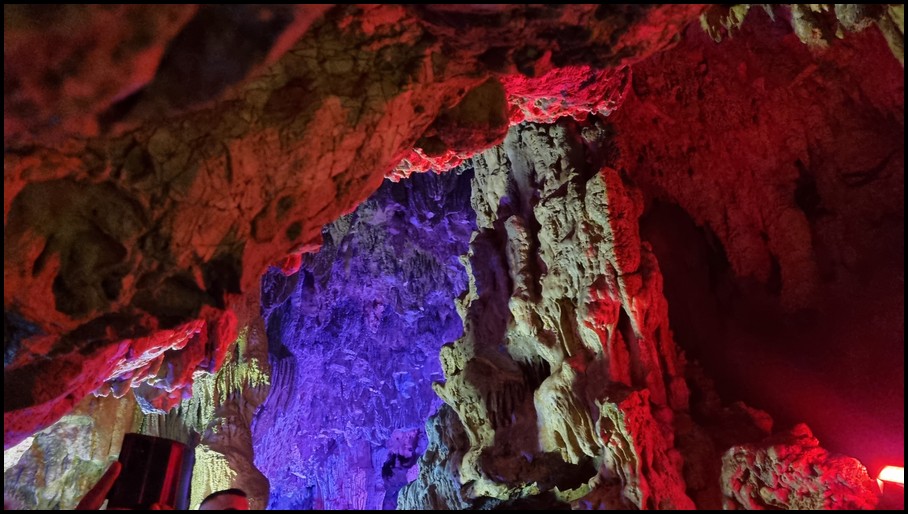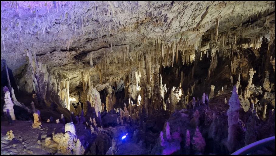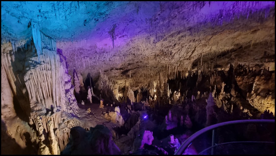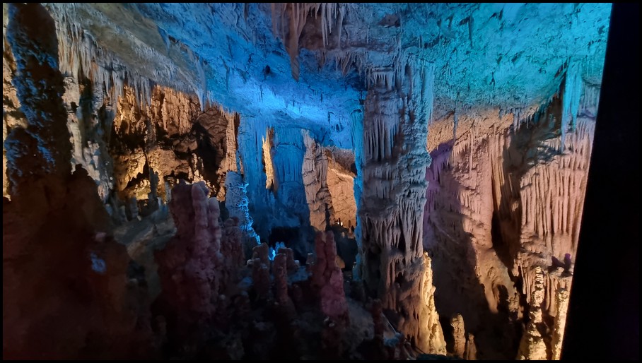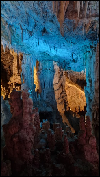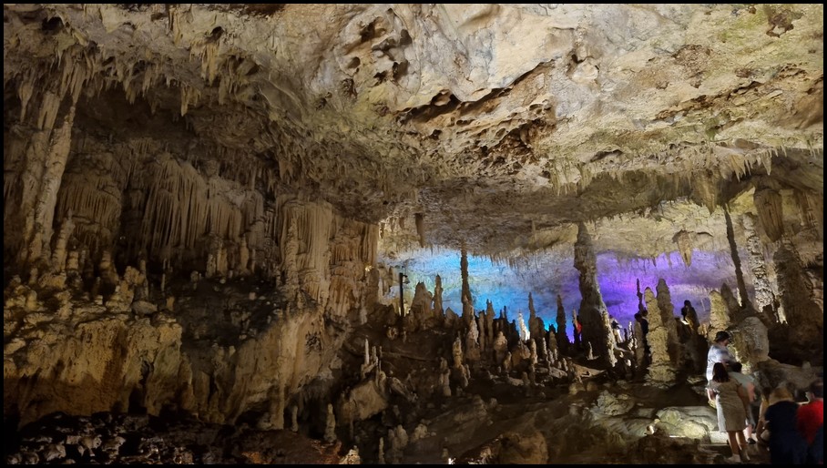 Ce matin nous quittons les Métèores, direction Loannina afin d'aller visiter la grotte de Perama qui se trouve à 117 kms d'où nous nous trouvons. La route serpente dans la montagne, nous faisans découvrir de magnifique panorama. Nous traversons plusieurs village,et nous remarquons que de nombreuses maisons ont des toits non pas en tuile mais en tôle. Nous arrivons à Perama, et nous trouvons le parking qui se trouve à 800m de l'entrée de la grotte. Nous faisons notre pause déjeuner avant de partir à la découverte de cete grotte. Nous prenons nos ticket 7€ et suivons le guide. La visite commence par un escalier de 163 marches qui nous amène à 25m sous terre. L'air dans la grotte est frais 18°, la visite dure environ 1 heure pour un parcours de 1100m. Nous sommes ébahie par le nombre, les formes et les couleurs variées des stalactites et stalagmites dont ses hautes salles sont remplies. Malheureusement les commentaires se font en grec ou en anglais donc pour nous il est assez difficile de suivre les explications du guide. A la sortie de la grotte nous retrouvons de nouveau la chaleur, nous reprenons le camping-car pour nous diriger vers un parking sur les hauteurs de la ville ce qui nous permettra de retrouver un peu de fraicheur pour la nuit.