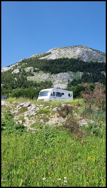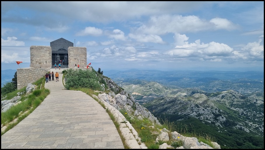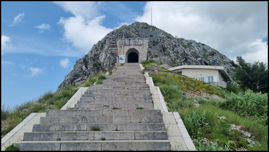 Aprés une nuit d'orage le ciel est revenue bleu ce matin.Nous prenons la route pour le parc national lovcen voir le mausolé qui n'était pas prévu mais qui ce trouve un peu sur notre route et toujours des routes étroitee et sinueuses et à la rencontre d'un bus de tourismes des manoeuvres pour l'un et l'autre ça passe juste mais ca passe.A l'arrivée il a fallut gravir 477 marches pour arriver a la vue panoramique du parc et vue sur la baie de Kotor on redescent de 1 kms à 14h pour se mettre sur un parking ou l'on passeras la nuit avec une vue manifique sur la vallée fin de journée.