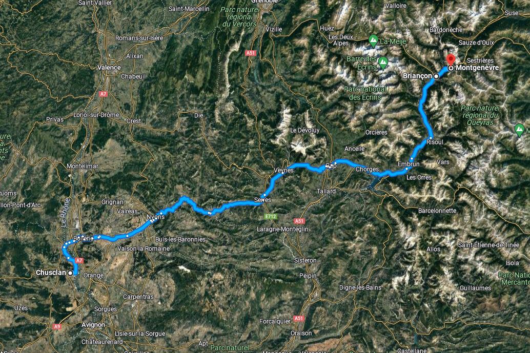 Beau temps au réveil, l'aire est parfaite. Nous aurions bien fait un tour à la cave de Chusclan avant de partir, mais celle ci est encore fermée.Ce matin nous décidons de changer de route pour rejoindre l'Italie. on se dirige vers Briançon via Montgenèvre a la frontière Italiene. Beaucoup de vignes sur notre route, nous apercevons la citadelle de Briançon, mais nous n'avons pas le temps d'aller la visiter. Arrivée à Montgenèvre nous faisons étape à l'aire juste au dessus du poste de douane. La journée à été bien ensoleillée le beau temps a été avec encore nous pour cette journée, mais ce soir il pleut et la température redecendue à 9 degrés car nous sommes à 1800m d'altitude. Demain nous quittons la France.