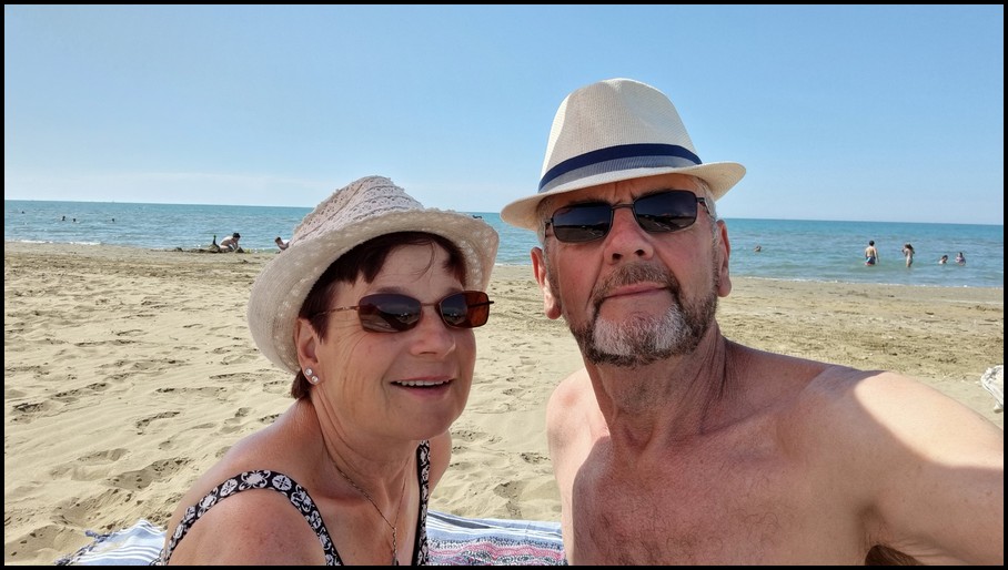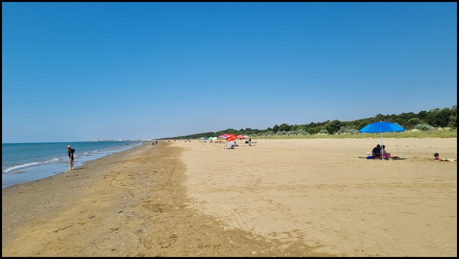 Ce matin petit changement de programme, nous décidons de rester sur l'aire pour la journée, un petit écrin de verdure avec la plage à proximité. Nous profitons de la matinée pour nous reposer tranquillement après deux jours de route et 1700km effectués depuis le départ. Nous en profitons pour préparer pour les jours suivants visites et hébergements. Il nous reste 90km avant d'arriver à la frontière Slovéne que passerons demain. Cet après-midi, c'est la plage qui nous accueille,bronzette bien tranquille au soleil. Une journée de repos cela fait du bien, de plus nous avons le temps et le soleil avec nous, que du bonheur.