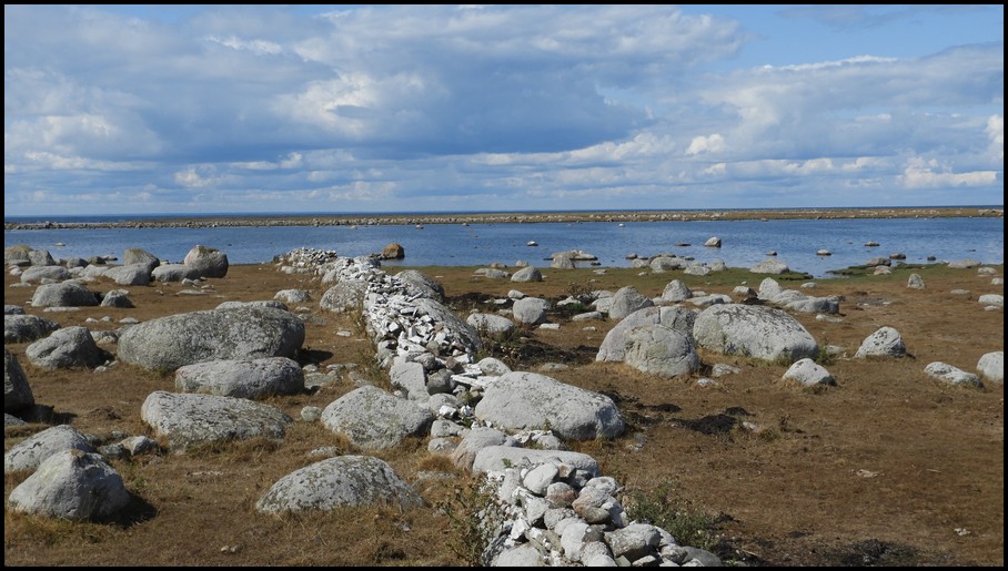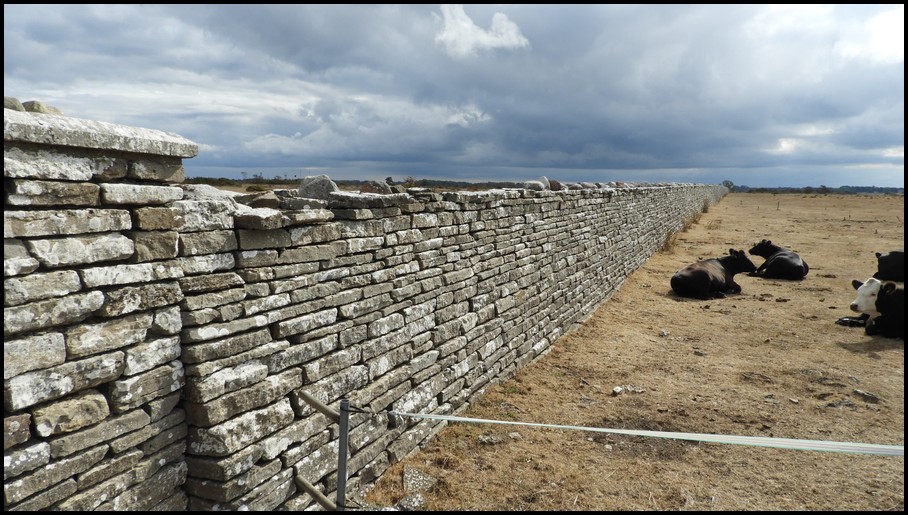 Ce matin nous continuons à visiter l'île en se dirigeant vers le phare de Lânge Jan au sud de l'île il a une hauteur de 41 mètres.Le paysage est désertique on retrouve des vaches et des moutons dans des pâturages si on peut dire,il y a une multitude d'oiseaux de plusieurs espèces et les chasseurs d'images sont nombreux pour les photographier un endroit trés nature et reposant c'est une réserve naturelle. La pause repas est prise sur place ensuite on remonte la côte Est tout le long on aperçoit des fermes car il y a beaucoup d'élevage.Nous visitons la forteresse d'Ekertorps datant de l'âge de fer elle a un diamètre d'environ 57 mètres tout a été restauré à l'identique. L'aprés midi c'est déroulé entre visite et découverte. Encore une trés bonne journée. Demain direction le nord de l'île, pour ce soir le bivouac sera sur le parking en herbe du château Borgholm gratuit sans service nous sommes trois CC étape de la journée 156 kms.